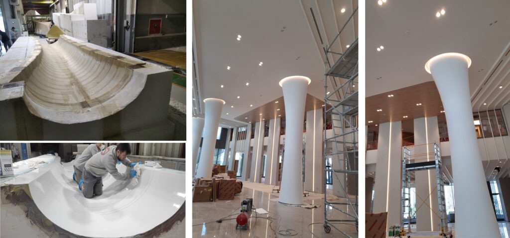 Acıbadem Ataşehir Hastanesi’nin A ve A2 giriş lobilerinde kullanılacak yeni kolonlar için tercih edilen tasarım, C4C markalı kompozit kolonlar oldu. Bu özel kolonlar METYX tarafından üretilmiş, proje tasarımı ve taahhüt hizmetleri ise Dragos tarafından sağlanmıştır. Proje, zorlu teknik ve estetik gereksinimlerin tümünü başarıyla karşılamıştır.